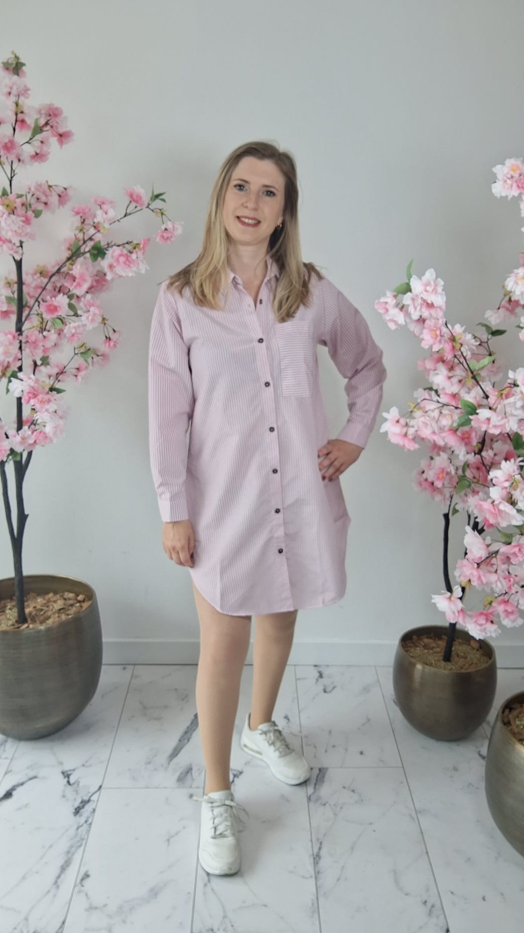 Staat een stedentrip op de planning? Jurk Santorini is jouw perfecte reisgezel. Licht, luchtig en lekker lang — deze blousejurk met subtiele wit-roze streepjes is precies wat je wilt dragen tijdens zonnige avonturen door pittoreske straatjes of over gezellige boulevards.
